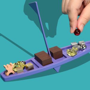 日本桌遊Itten遊戲人數:2-4人 遊戲時間:10分鐘 適合年齡:8歲以上 我們趕快把行李放在船上,免得來不及了! 玩家輪流將自己的物品裝載到船上。行李始終放置在頂層甲板上。如果船傾斜了,你必須把船的箱子當作自己的行李當作懲罰。 船總是上下傾斜,所以要反覆在像是蹺蹺板的船上放置物品。當有人裝載完所有行李或沒有剩餘懲罰箱時,遊戲結束。 行李箱件採用黃銅、鋁、鐵、玻璃、壓克力、木材等不同材質製成,猜重量並創造攻防策略的樂趣,打造出一款別樣味道的蹺蹺板遊戲。NT$790NT$790 -
